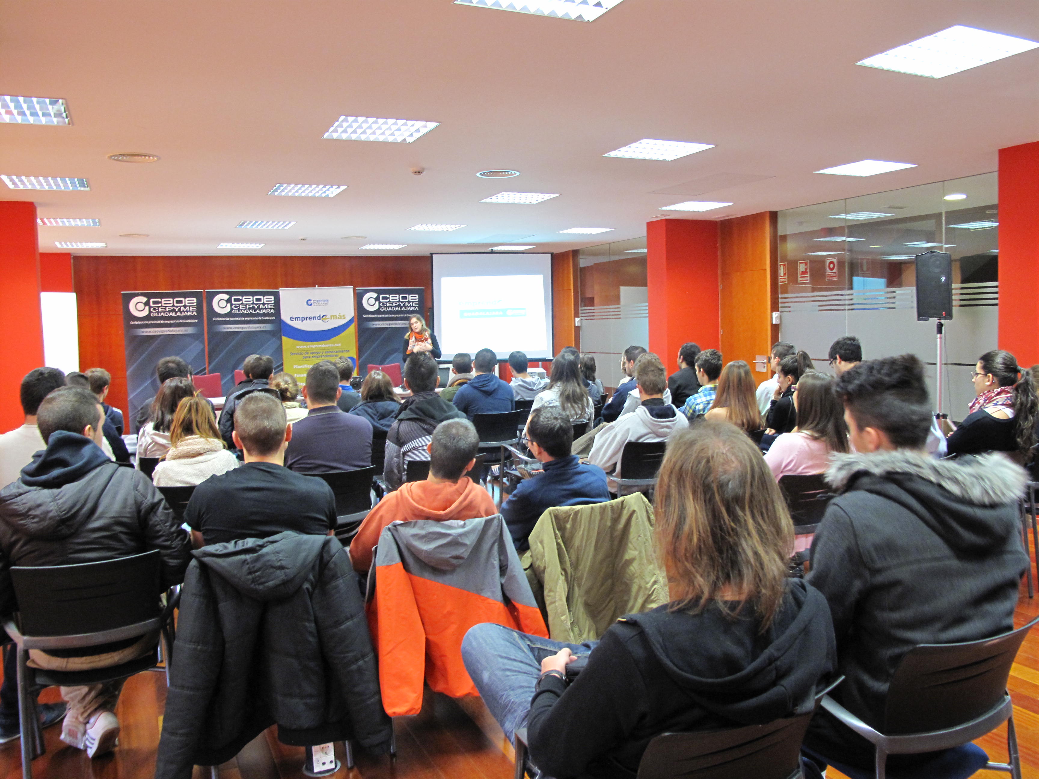 Los técnicos de CEOE-CEPYME Guadalajara del programa Emprende+más de CECAM han mostrado esta semana a 90 jóvenes de los IES Liceo Caracense y Brianda de Mendoza como ser empresario, los pasos que tienen que seguir para llegar a montar su propia empresa.